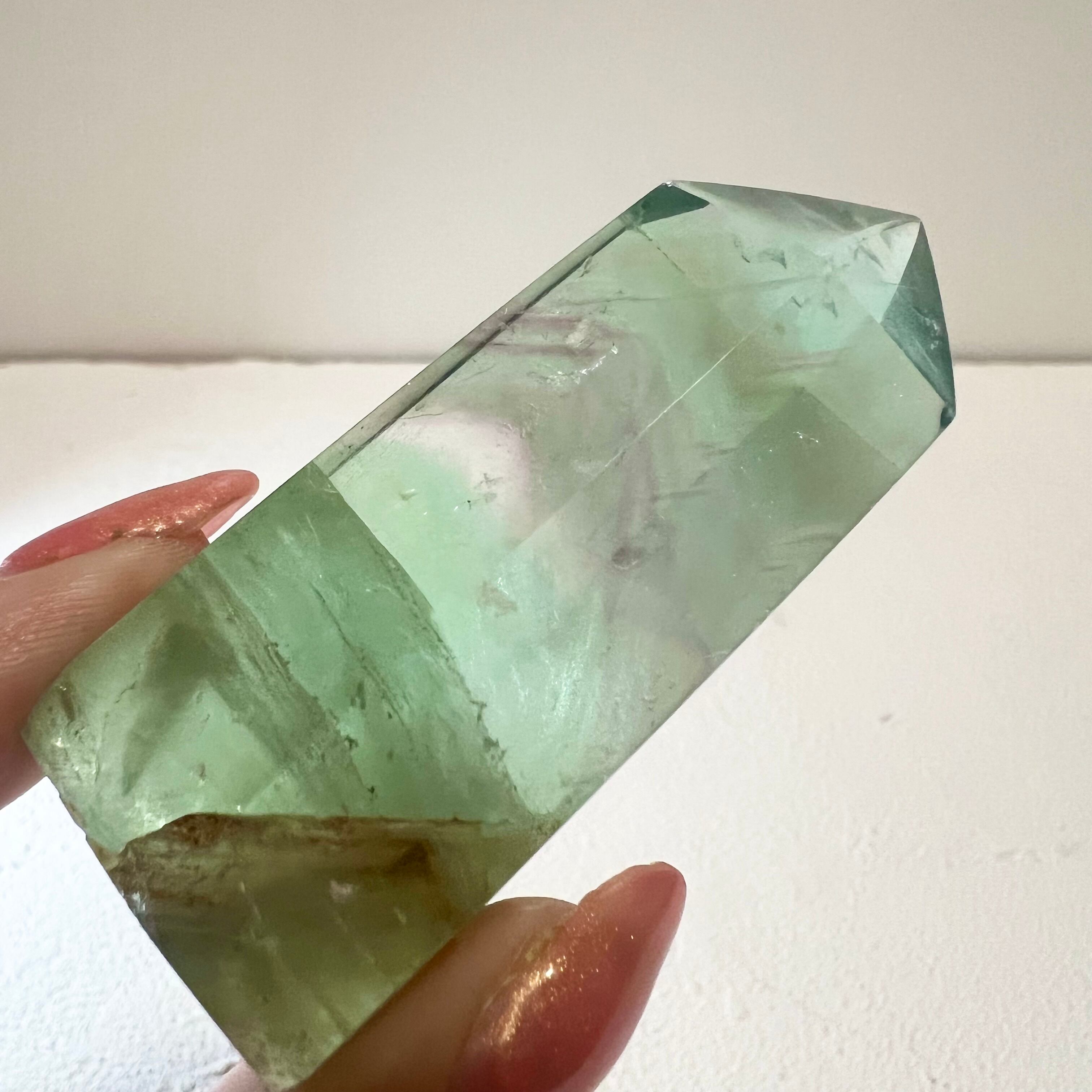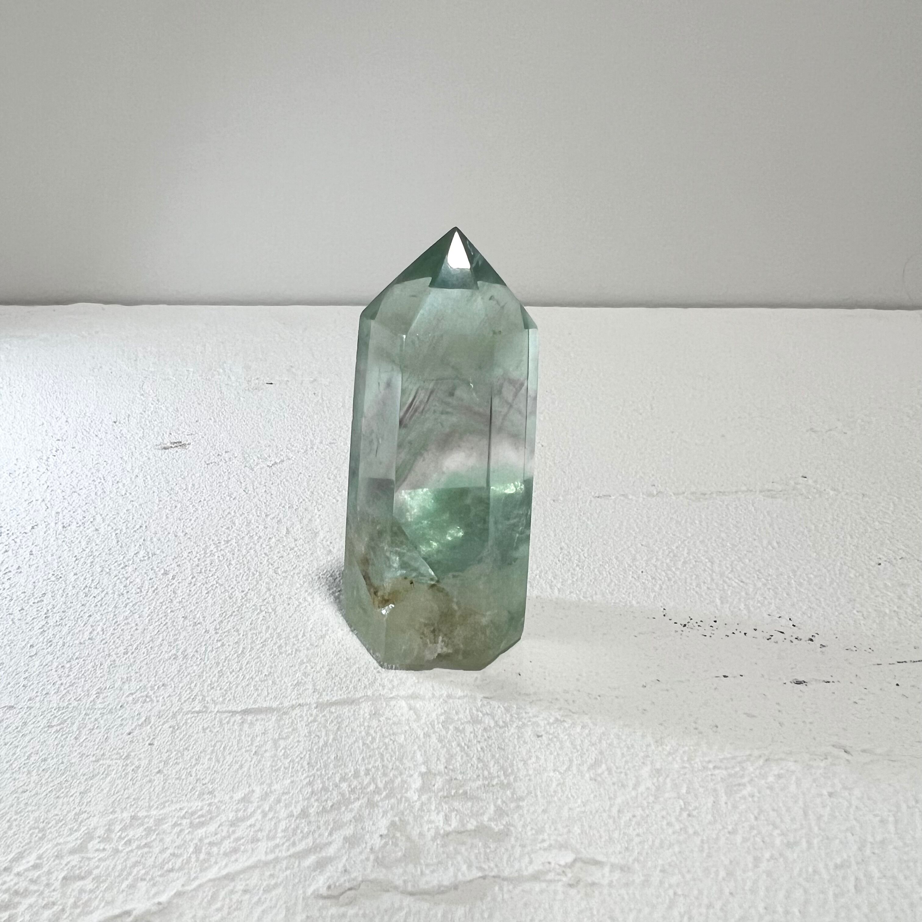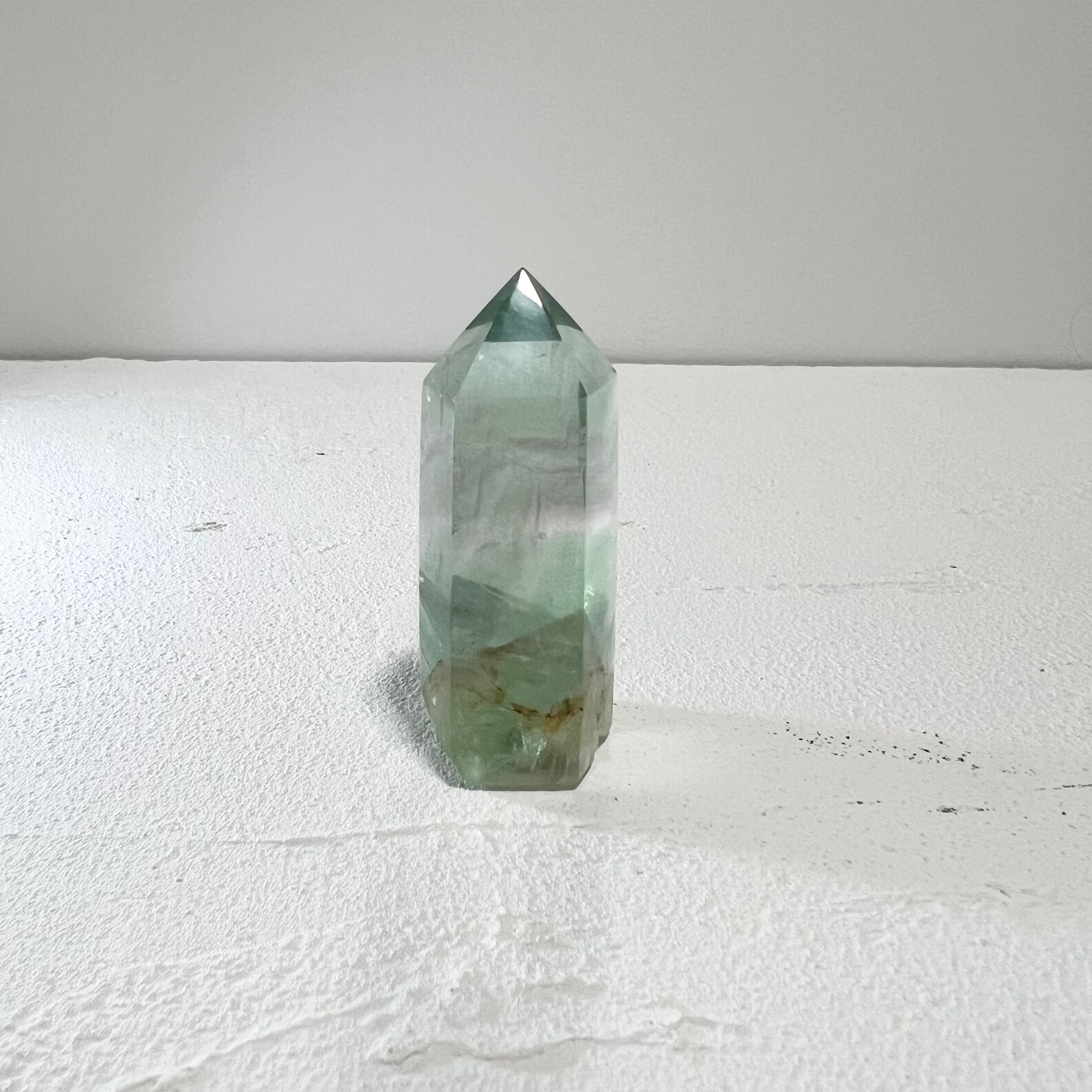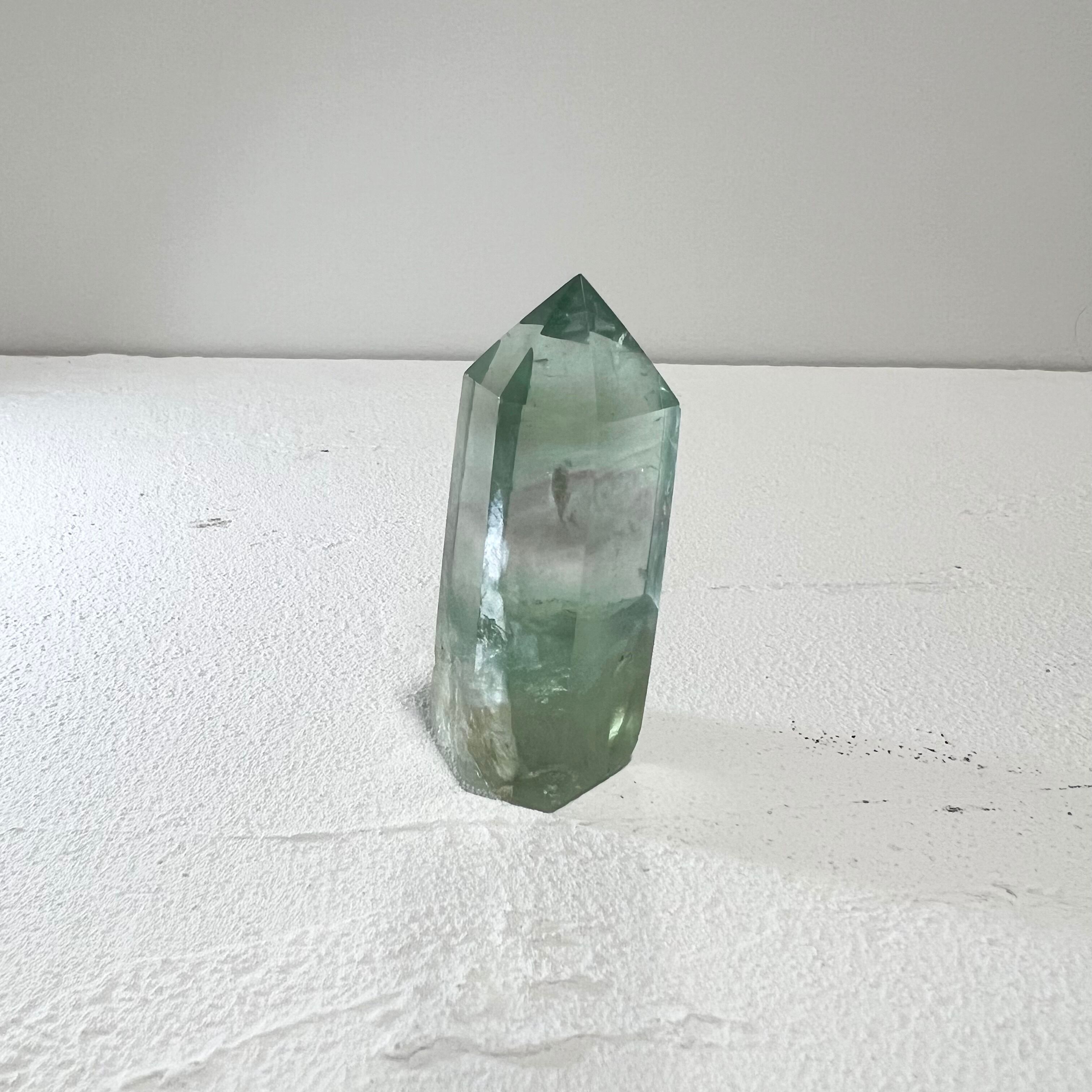 淡いグリーンの透明感が印象的なフローライトポイントです。