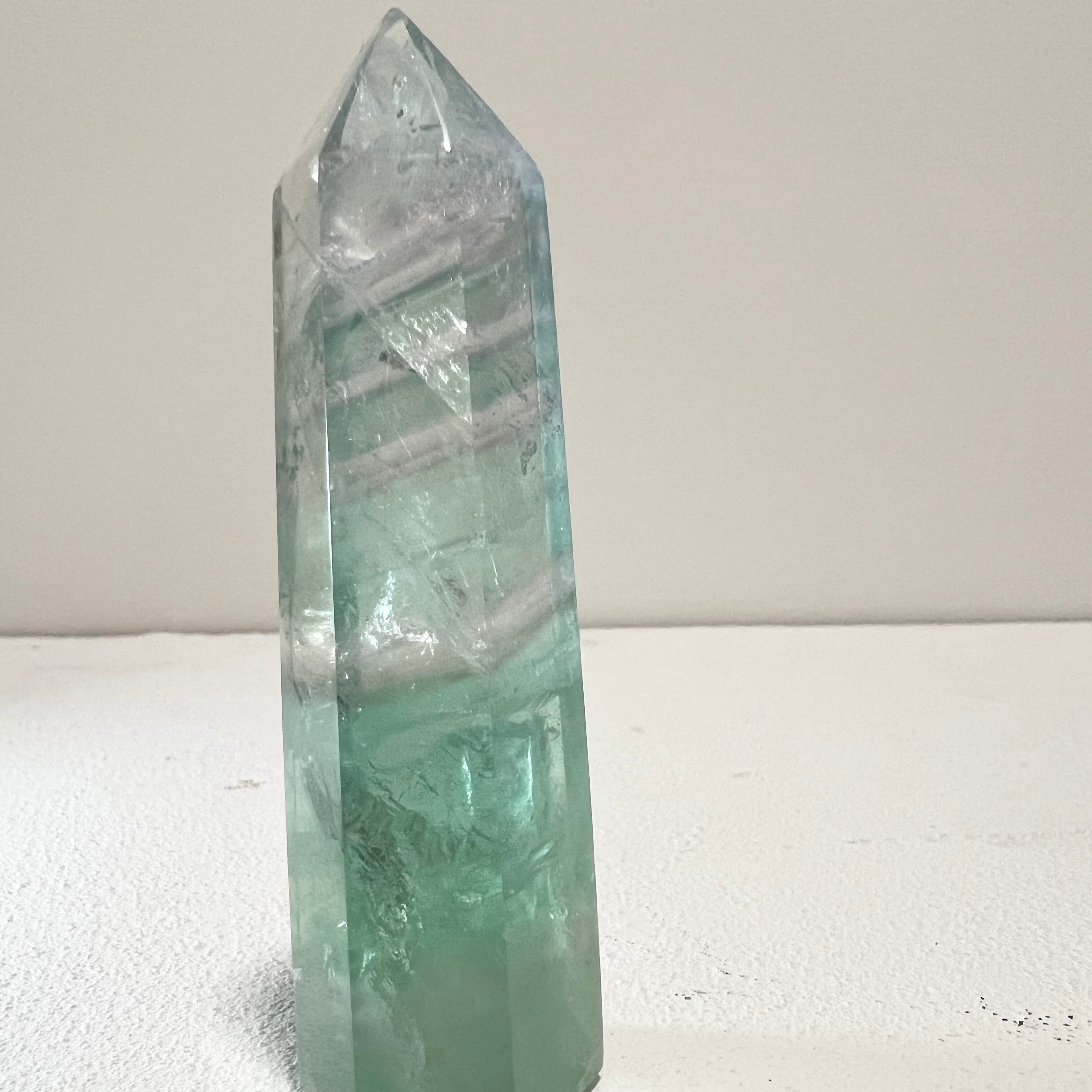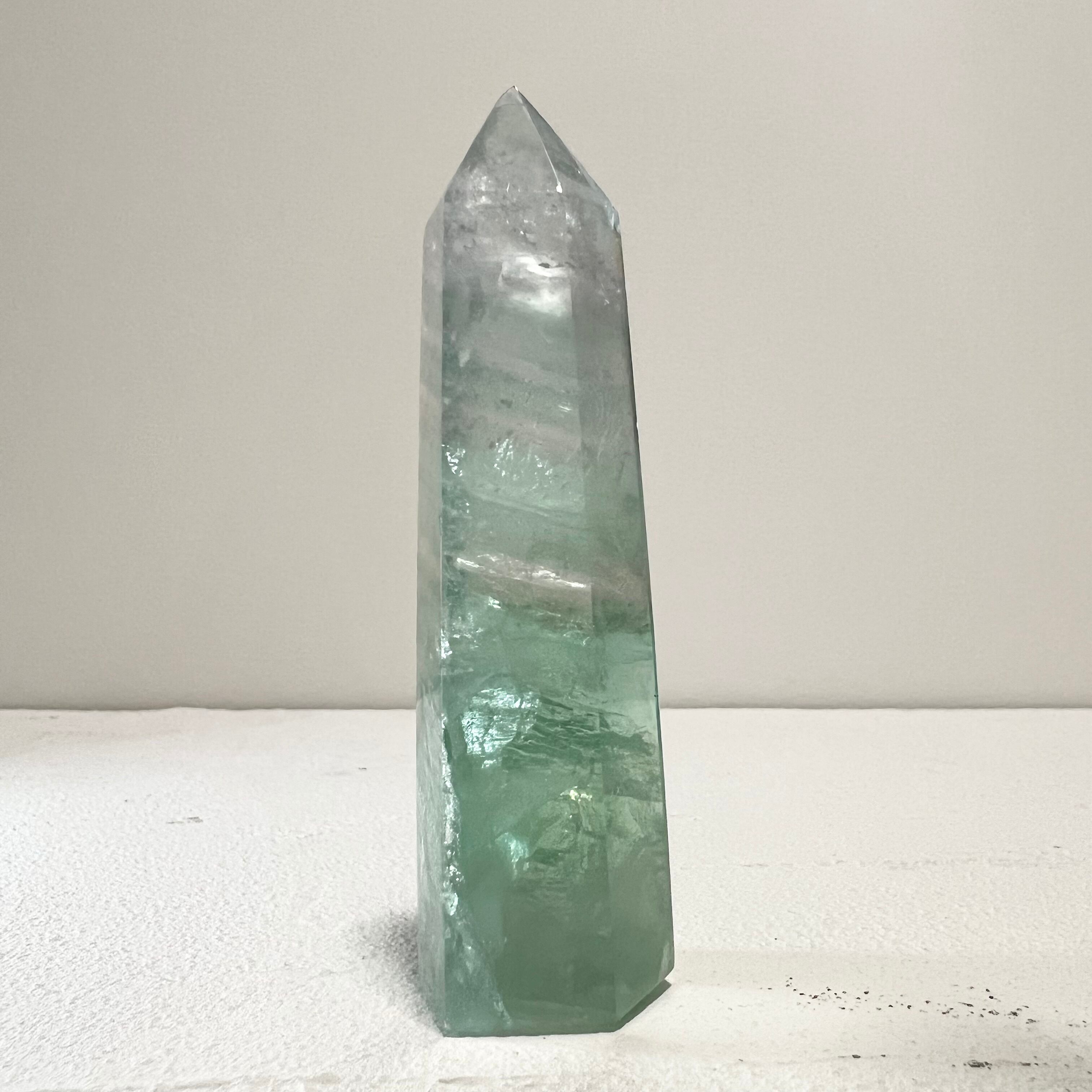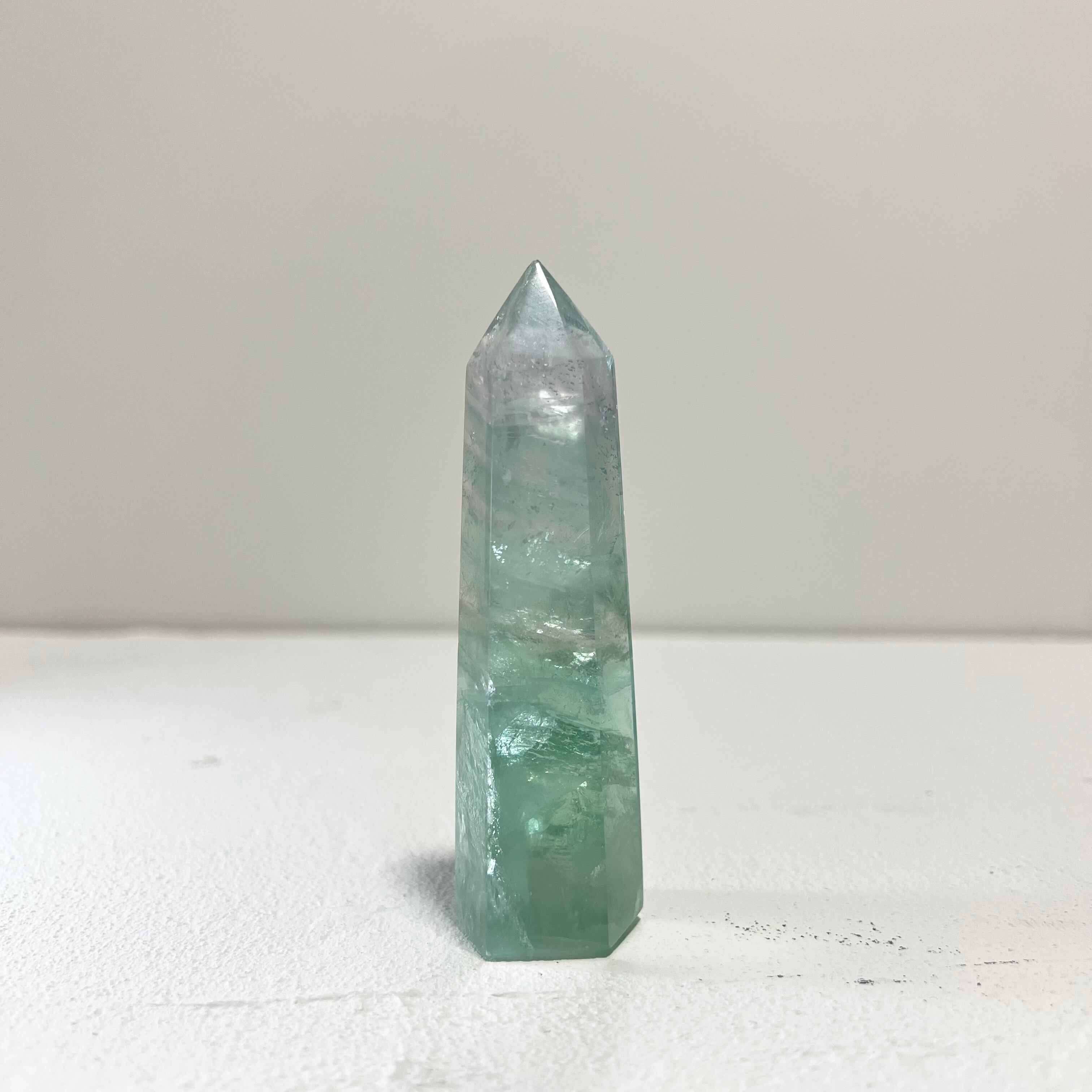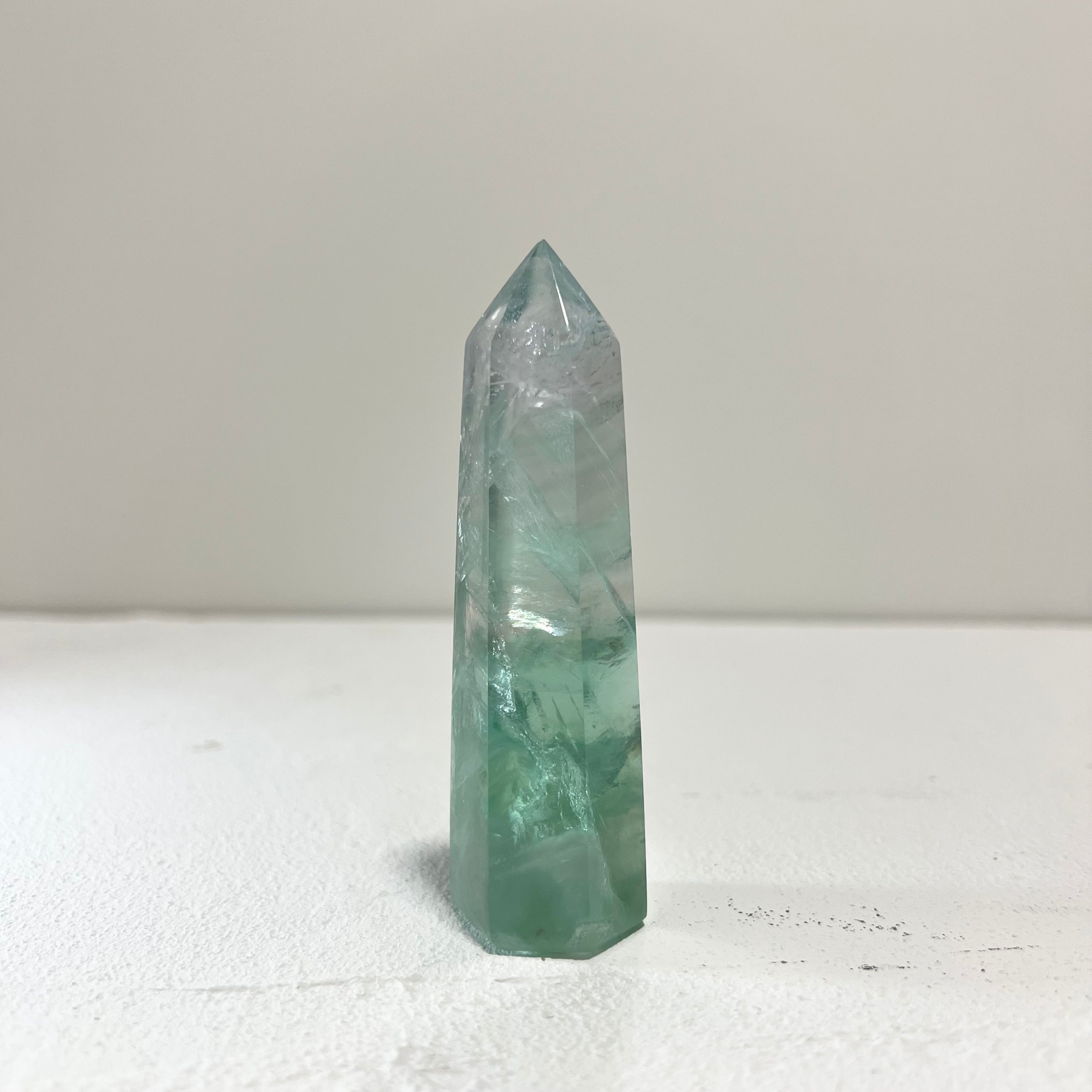 淡いグリーンの色合いが美しい天然フローライトのポイントです。