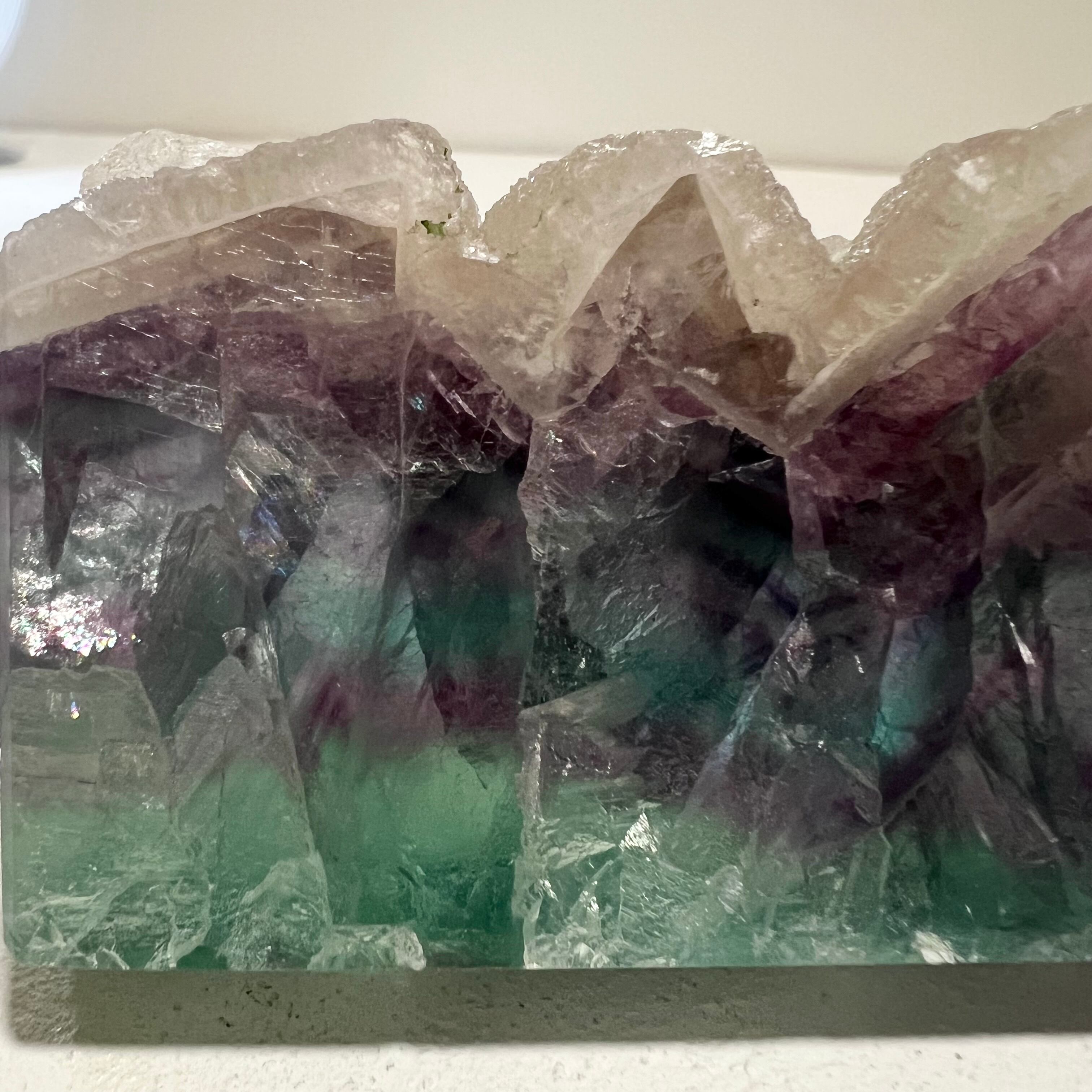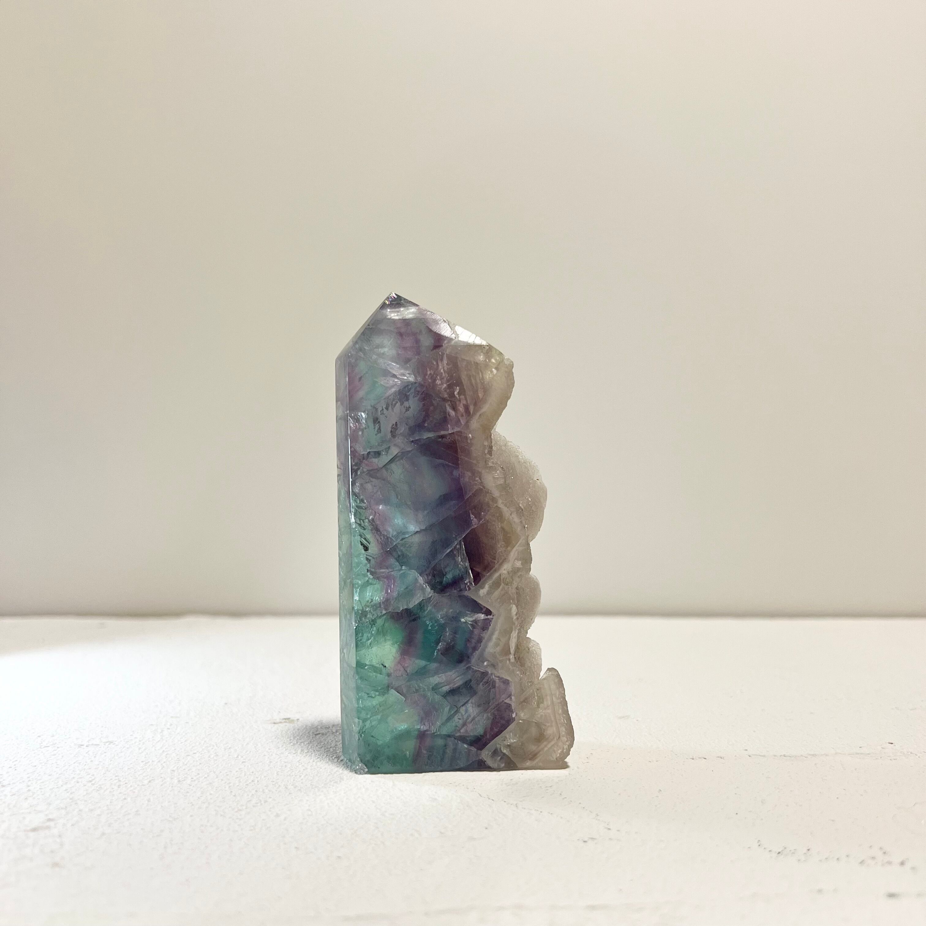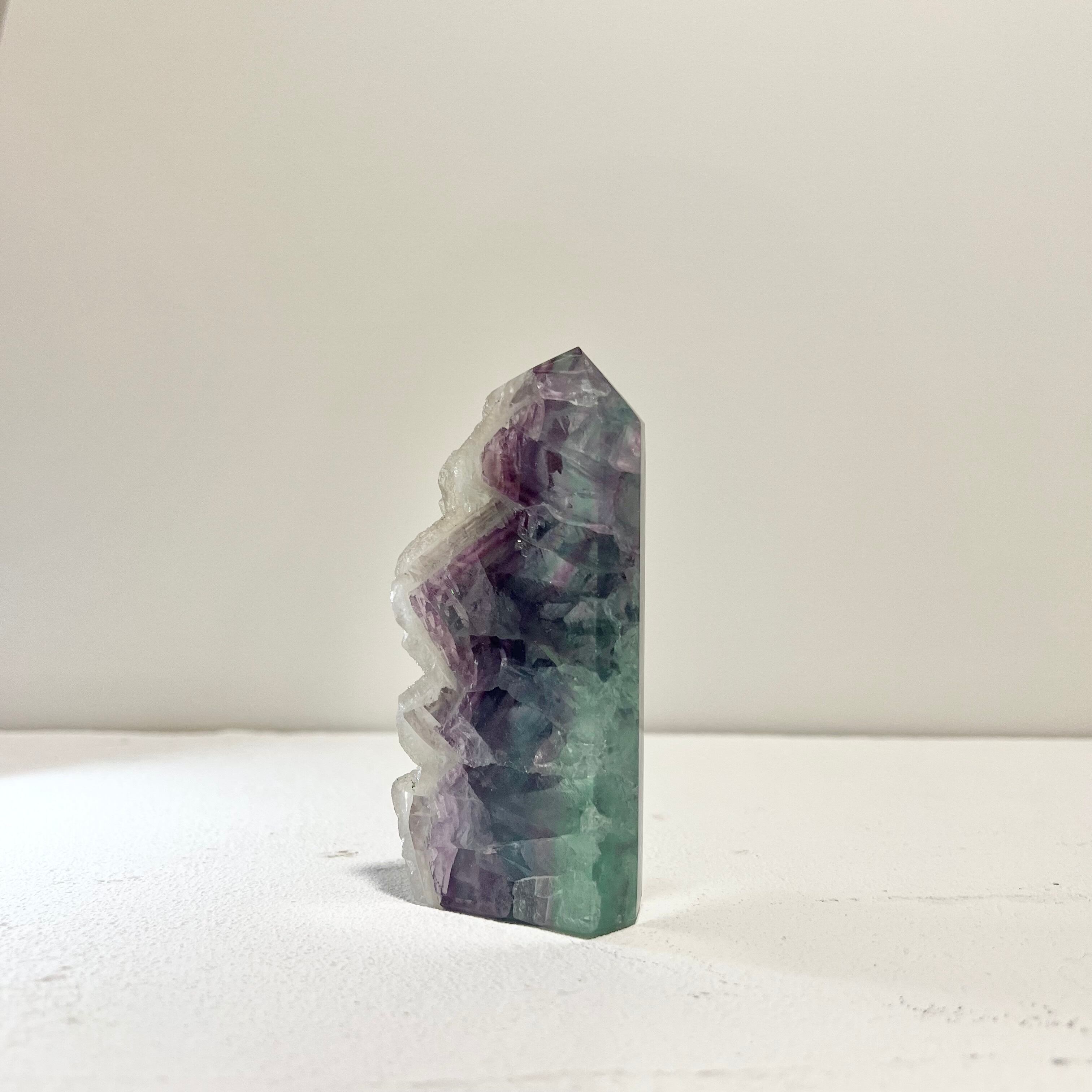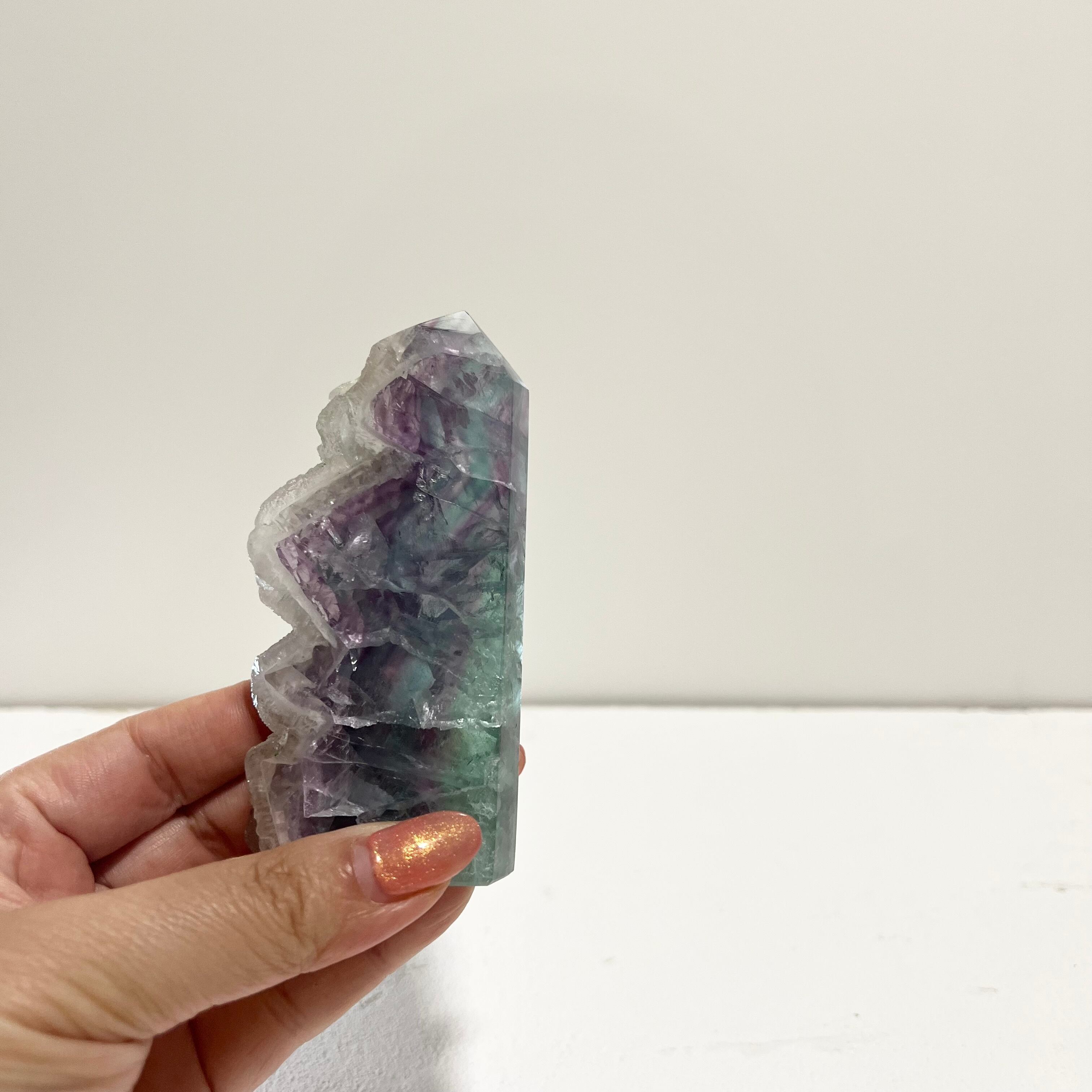 幻想的なグリーンとパープルのグラデーションが美しい、天然フローライトのポイントです。
