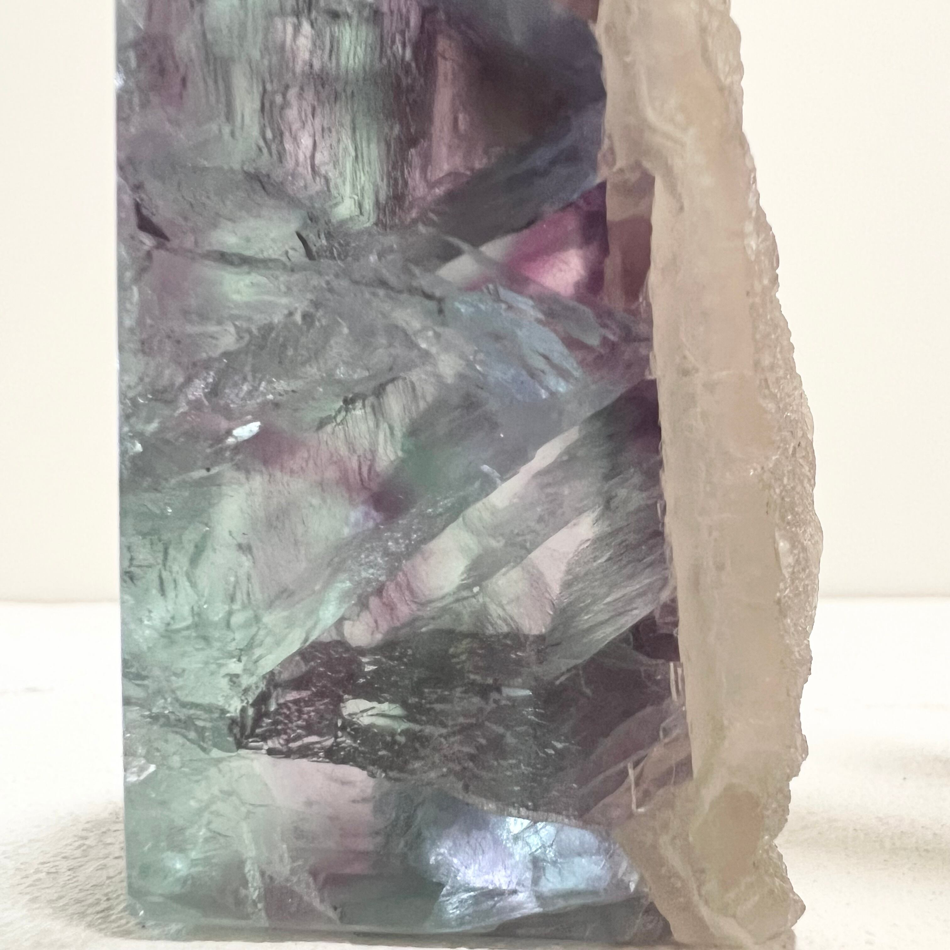 幻想的なグリーンとパープルのグラデーションが美しい、天然フローライトのポイントです。
